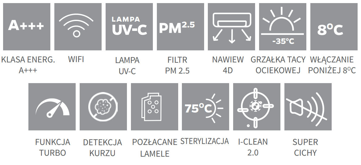 Ande MAGMA PRO UV to nie tylko sprzęt, to inteligentne rozwiązanie, przypominające o konieczności utrzymania filtra w czystości. Dodatkowe funkcje, takie jak nawiew 4D, automatyczne włączanie poniżej 8°C, czy pozłacane lamele, sprawiają, że korzystanie z klimatyzatora to wyjątkowe doświadczenie. Model posiada 5-letnią gwarancją, w tym 10 lat na sprężarkę co wyróżnia go spośród oferty ANDE. To więcej niż klimatyzator - to nowa era w klimatyzacji, łącząca design, innowację i efektywność.