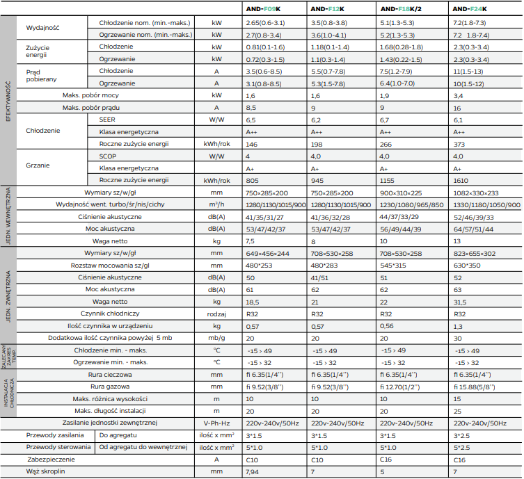 Klimatyzacja Ande BASIC+ AND-F12K 3,5 kW