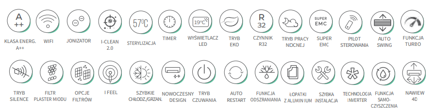 Klimatyzator BASIC+ to podstawowy model marki ANDE, który łączy w sobie najwyższą jakość i funkcjonalność w stosunku do ceny. Urządzenie wykorzystuje czynnik R32, posiada tryb silence oraz wysoką klasę energetyczną. Dodatkowo wyróżniają go niewielkie rozmiary (szerokość to tylko 750 mm) oraz fabrycznie wbudowany jonizator COLD PLASMA. Dostępny w wydajności od 2,5 kW do 7 kW. Urządzenie zostało wyposażone w nowy sterownik bezprzewodowy, a wymiary jednostek zewnętrznych zostały zmniejszone, co czyni go jeszcze bardziej kompaktowym. Dzięki zastosowaniu technologii inwerterowej i osiągnięciu klasy energetycznej A++, urządzenia gwarantują nie tylko wysoką efektywność energetyczną, ale także niezawodność. W cenie dostaniemy szereg dodatkowych funkcji, takich jak samooczyszczanie, tryb turbo, programator czasowy, zdalne sterowanie, a także możliwość dołączenia dodatkowych filtrów.